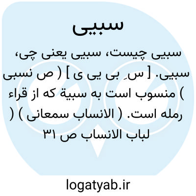 سبیی. [ س ِ بی یی ی ] ( ص نسبی ) منسوب است به سبیة که از قراء رمله است. ( الانساب سمعانی ) ( لباب الانساب ص 31 ).