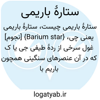 {Barium star} [نجوم] غول سرخی از ردۀ طیفی جی یا ک که در آن عنصرهای سنگینی همچون باریم با فراوانی غیرمعمول در طیف نمایان می شوند