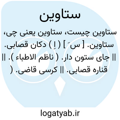 ستاوین. [ س َ ] ( اِ ) دکان قصابی. || جای ستون دار. ( ناظم الاطباء ). || قناره قصابی. || کرسی قاضی. ( ناظم الاطباء ) ( استینگاس ).