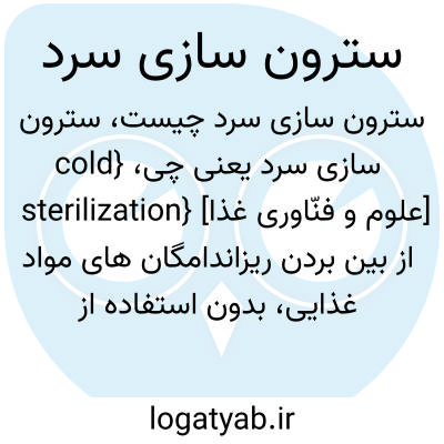 {cold sterilization} [علوم و فنّاوری غذا] از بین بردن ریزاندامگان های مواد غذایی، بدون استفاده از حرارت زیاد و با استفاده از پرتودهی یا فشار بالا یا فراصوت و مانند آن