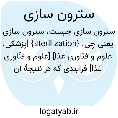 {sterilization} [پزشکی، علوم و فنّاوری غذا] [علوم و فنّاوری غذا] فرایندی که در نتیجۀ آن همۀ ریزاندامگان های موجود در مواد از میان می رود [پزشکی] فرایندی که در نتیجۀ آن زخم یا ابزار جراحی یا دیگر اشیا عاری از باکتری یا ریزاندامگان ها می شود