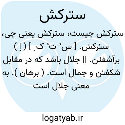 سترکش. [ س ُ ت ُ ک ِ ] ( اِ ) برآشفتن. || جلال باشد که در مقابل شکفتن و جمال است. ( برهان ). به معنی جلال است چه صفات جمال و هر چه در آن قهر و جبر باشد آن را صفات جلال گفته اند. ( آنندراج ).