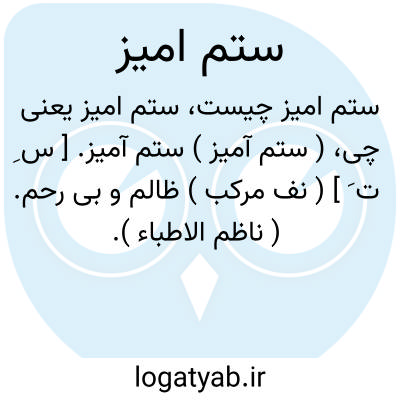 ( ستم آمیز ) ستم آمیز. [ س ِ ت َ ] ( نف مرکب ) ظالم و بی رحم. ( ناظم الاطباء ).