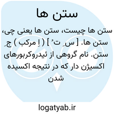 ستن ها. [ س ِ ت ُ ] ( اِ مرکب ) ج ِ ستن. نام گروهی از ئیدروکربورهای اکسیژن دار که در نتیجه اکسیده شدن الکلهای نوع دوّم حاصل میشود، بعبارت دیگر اگر گروه کربنیل ( co ) بدو گروه آلکیل متّصل باشد ستن نامیده میشود. ( از شیمی عمومی ترجمه ٔمنصور عابدینی چ دانشگاه ) ( از شیمی رضا قلیزاده ).