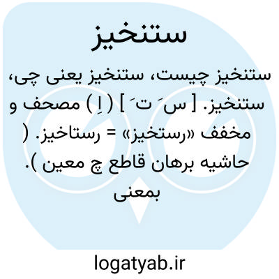 ستنخیز. [ س َ ت َ ] ( اِ ) مصحف و مخفف «رستخیز» = رستاخیز. ( حاشیه برهان قاطع چ معین ). بمعنی رستاخیز است که قیامت و حشر و نشر باشد. ( برهان )( آنندراج ). رستخیز. ( اوبهی ). رجوع به رستخیز شود.