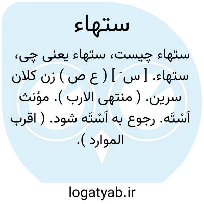 ستهاء. [ س َ ] ( ع ص ) زن کلان سرین. ( منتهی الارب ). مؤنث اَسْتَه. رجوع به اَسْتَه شود. ( اقرب الموارد ).