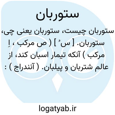 ستوربان. [ س ُ ] ( ص مرکب، اِ مرکب ) آنکه تیمار اسبان کند، از عالم شتربان و پیلبان. ( آنندراج ): گفت من ستوربان اویم... گفت مرا بسرای ستوربان خود فرود آوری و اکنون ستوربانت را برخوان. ( تاریخ سیستان ). اما او پسر عم من است نه ستوربان. ( تاریخ سیستان ). مهتر گفت: تو خر نداری ستوربانان بقلباق رفته اند تا گاه سلطانی بغارت بردارند. ( تاریخ بیهقی ).