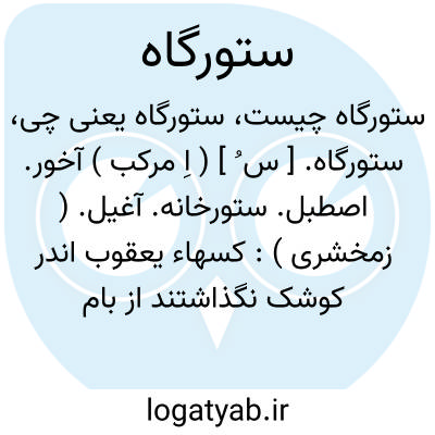 ستورگاه. [ س ُ ] ( اِ مرکب ) آخور. اصطبل. ستورخانه. آغیل. ( زمخشری ): کسهاء یعقوب اندر کوشک نگذاشتند از بام ستورگاه لیث را بر سر کلوخی زدند سرش بشکست. ( تاریخ سیستان ). و گفت [ ابوالفتح بستی ]: من قریب بیست روز است تا در ستورگاه آب میکشم. ( تاریخ بیهقی ). لختی فرو رفتند ناگاه میخی آهنین پیدا آمد سطبر چنانکه ستورگاه را باشد. ( تاریخ بیهقی ). و این گل تا به خانه و کاشانه چنان نباشد که گل ستورگاه. ( معارف بهاء ولد ).