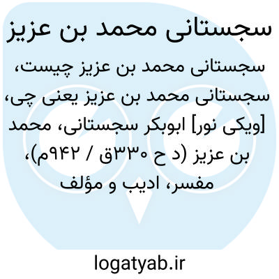 [ویکی نور] ابوبکر سجستانی، محمد بن عزیز (د ح 330ق / 942م)، مفسر، ادیب و مؤلف در زمینه غریب القرآن بوده است.
