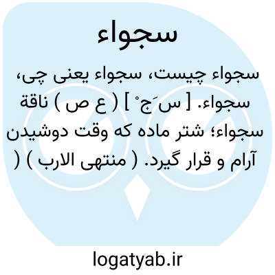 سجواء. [ س َج ْ ] ( ع ص ) ناقة سجواء؛ شتر ماده که وقت دوشیدن آرام و قرار گیرد. ( منتهی الارب ) ( آنندراج ) ( از اقرب الموارد ). || امراءة سجواءالطرف؛ زن آرمیده چشم. ( منتهی الارب ) ( آنندراج ) ( از اقرب الموارد ).