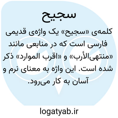 کلمه‌ی «سجیح» یک واژه‌ی قدیمی فارسی است که در منابعی مانند «منتهی‌الأرب» و «اقرب الموارد» ذکر شده است. این واژه به معنای نرم و آسان به کار می‌رود و معمولاً برای توصیف ویژگی‌های جسمی یا روحی چیزی یا کسی استفاده می‌شود که حالت انعطاف‌پذیری یا ملایمت دارد. سجیح می‌تواند در متن‌های ادبی و پزشکی نیز به کار رود. در پزشکی قدیم، مثلاً برای توصیف بافت نرم یا انعطاف‌پذیر بدن یا پوست از این واژه استفاده می‌شد. به طور کلی، سجیح بیانگر صفتی است که نشان‌دهنده‌ی راحتی، ملایمت و عدم خشونت یا سختی است. در ادبیات و سخن‌پردازی، به کار بردن واژه‌ی «سجیح» به متن زیبایی و لطافت می‌بخشد. این واژه نشان‌دهنده‌ی نرمی رفتار، سخن یا حتی فکر و اندیشه نیز می‌تواند باشد و خواننده یا شنونده را با حس آرامش و راحتی مواجه می‌کند.