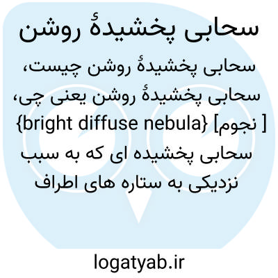 فرهنگستان زبان و ادب {bright diffuse nebula} [نجوم ] سحابی پخشیده ای که به سبب نزدیکی به ستاره های اطراف درخشان دیده می شود