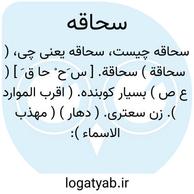 ( سحاقة ) سحاقة. [ س َح ْ حا ق َ ] ( ع ص ) بسیار کوبنده. ( اقرب الموارد ). زن سعتری. ( دهار ) ( مهذب الاسماء ): امراءة سحاقة؛ زن بزرگ و فروهشته پستان و این نعت بدانست مر زنان را. ( منتهی الارب ) ( اقرب الموارد ).