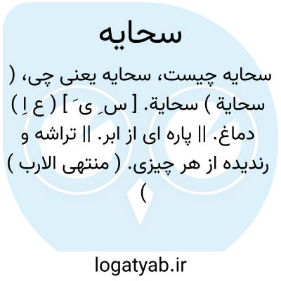 ( سحایة ) سحایة. [ س ِ ی َ ] ( ع اِ ) دماغ. || پاره ای از ابر. || تراشه و رندیده از هر چیزی. ( منتهی الارب ) ( اقرب الموارد ): سحایة القرطاس؛ تراشه کاغذ. ( منتهی الارب ). || پیشه سَحّاء. ( اقرب الموارد ).
