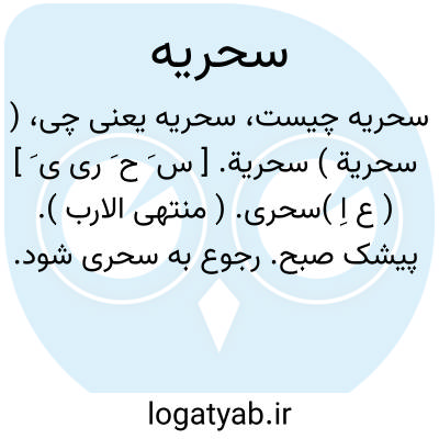 ( سحریة ) سحریة. [ س َ ح َ ری ی َ ] ( ع اِ )سحری. ( منتهی الارب ). پیشک صبح. رجوع به سحری شود.