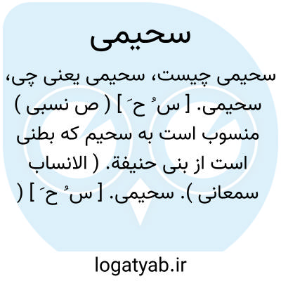 سحیمی. [ س ُ ح َ ] ( ص نسبی ) منسوب است به سحیم که بطنی است از بنی حنیفة. ( الانساب سمعانی ).