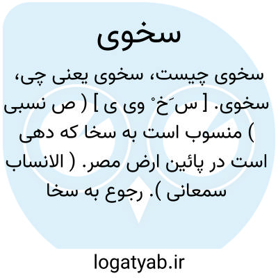 سخوی. [ س َخ ْ وی ی ] ( ص نسبی ) منسوب است به سخا که دهی است در پائین ارض مصر. ( الانساب سمعانی ). رجوع به سخا شود.