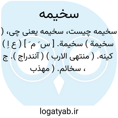 لغت نامه دهخدا ( سخیمة ) سخیمة. [ س َ م َ ] ( ع اِ ) کینه. ( منتهی الارب ) ( آنندراج ). ج، سخائم. ( مهذب الاسماء ). الحقد فی النفس. ( بحر الجواهر ). || پلیدی. ( منتهی الارب ) ( آنندراج ).