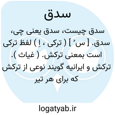 سدق. [ س ُ ] ( ترکی، اِ ) لفظ ترکی است بمعنی ترکش. ( غیاث ). ترکش و ایرانیه گویند نوعی از ترکش که برای هر تیر توی آن خانه جداگانه باشد. ( آنندراج ).