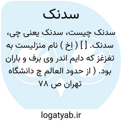 لغت نامه دهخدا سدنک. [ ] ( اِخ ) نام منزلیست به تغزغز که دایم اندر وی برف و باران بود. ( از حدود العالم چ دانشگاه تهران ص 78 ).