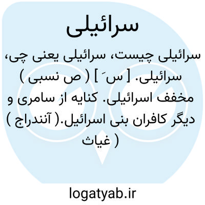 سرائیلی. [ س َ ] ( ص نسبی ) مخفف اسرائیلی. کنایه از سامری و دیگر کافران بنی اسرائیل.( آنندراج ) ( غیاث ). سریانی. ( دهار ) ( مهذب الاسماء ).