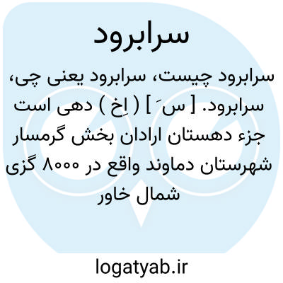 سرابرود. [ س َ ] ( اِخ ) دهی است جزء دهستان ارادان بخش گرمسار شهرستان دماوند واقع در 8000 گزی شمال خاور گرمسار. هوای آنجا سرد و دارای 98 تن سکنه است. آب آنجا از حبله رود تأمین می شود و محصول آنجا غلات، پنبه، بن شن، انار، انجیر و شغل اهالی زراعت است. راه آن مالرو است. ( از فرهنگ جغرافیایی ایران ج 1 ).