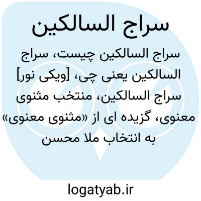 [ویکی نور] سراج السالکین، منتخب مثنوی معنوی، گزیده ای از «مثنوی معنوی» به انتخاب ملا محسن فیض کاشانی (1007 - 1091) است که نشان گر جنبه عرفانی شخصیت خود فیض است.