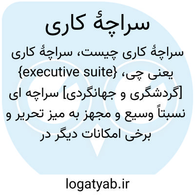 {executive suite} [گردشگری و جهانگردی] سراچه ای نسبتاً وسیع و مجهز به میز تحریر و برخی امکانات دیگر در مهمان خانه/ هتل برای بازرگانان و مدیران