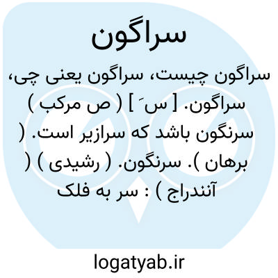 سراگون. [ س َ ] ( ص مرکب ) سرنگون باشد که سرازیر است. ( برهان ). سرنگون. ( رشیدی ) ( آنندراج ):