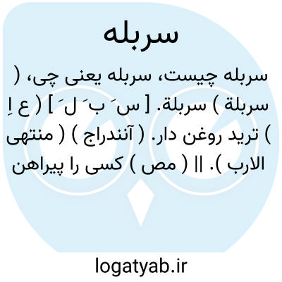 ( سربلة ) سربلة. [ س َ ب َ ل َ ] ( ع اِ ) ترید روغن دار. ( آنندراج ) ( منتهی الارب ). || ( مص ) کسی را پیراهن پوشانیدن. ( دهار ) ( زوزنی ) ( آنندراج ) ( منتهی الارب ). سربال پوشاندن کسی را. ( از اقرب الموارد ).