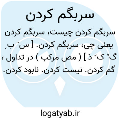 لغت نامه دهخدا سربگم کردن. [ س َ ب ِ گ ُ ک َ دَ ] ( مص مرکب ) در تداول، گم کردن. نیست کردن. نابود کردن.