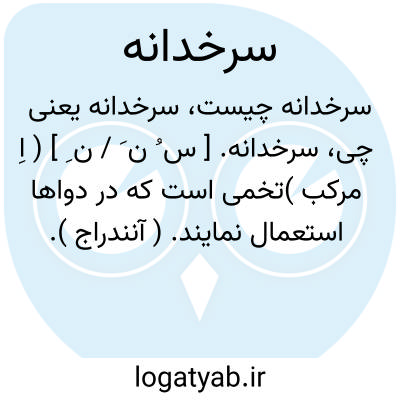 لغت نامه دهخدا سرخدانه. [ س ُ ن َ / ن ِ ] ( اِ مرکب )تخمی است که در دواها استعمال نمایند. ( آنندراج ).
