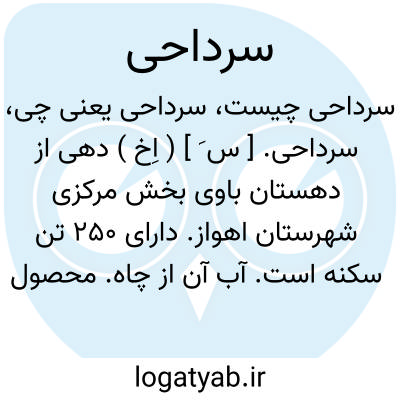 سرداحی. [ س َ ] ( اِخ ) دهی از دهستان باوی بخش مرکزی شهرستان اهواز. دارای 250 تن سکنه است. آب آن از چاه. محصول آن لبنیات، غلات است. ساکنین از طایفه حمید هستند. ( از فرهنگ جغرافیائی ایران ج 6 ).