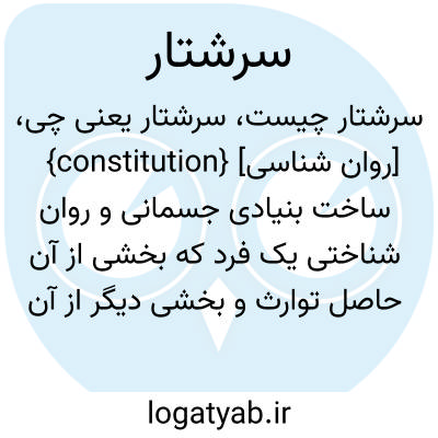 {constitution} [روان شناسی] ساخت بنیادی جسمانی و روان شناختی یک فرد که بخشی از آن حاصل توارث و بخشی دیگر از آن نتیجۀ تجربیات زندگی و عوامل محیطی است