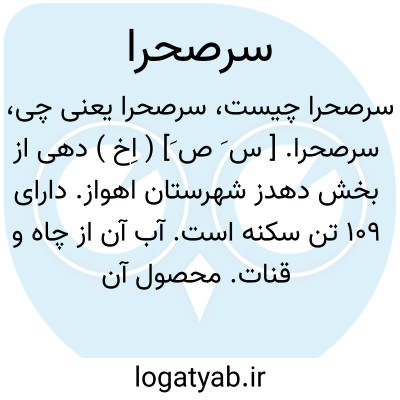 سرصحرا. [ س َ ص َ] ( اِخ ) دهی از بخش دهدز شهرستان اهواز. دارای 109 تن سکنه است. آب آن از چاه و قنات. محصول آن غلات، لبنیات و صیفی است. ( از فرهنگ جغرافیائی ایران ج 6 ).