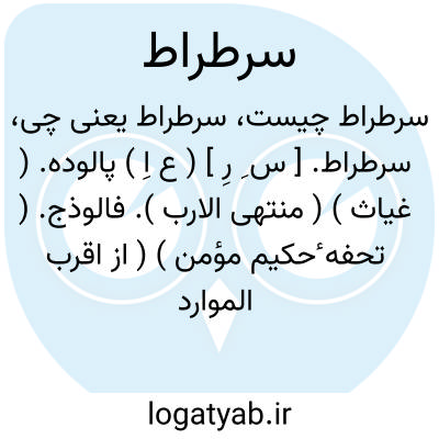 سرطراط. [ س ِ رِ ] ( ع اِ ) پالوده. ( غیاث ) ( منتهی الارب ). فالوذج. ( تحفه ٔحکیم مؤمن ) ( از اقرب الموارد ). || افروشه. ( منتهی الارب ) ( آنندراج ). خبیص. ( اقرب الموارد ).