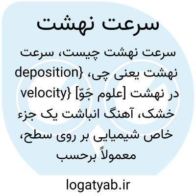 {deposition velocity} [علوم جَوّ] در نهشت خشک، آهنگ انباشت یک جزء خاص شیمیایی بر روی سطح، معمولاً برحسب سانتی متر بر ثانیه