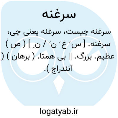 سرغنه. [ س َ غ َ ن َ / ن ِ ] ( ص ) عظیم. بزرگ. || بی همتا. ( برهان ) ( آنندراج ).