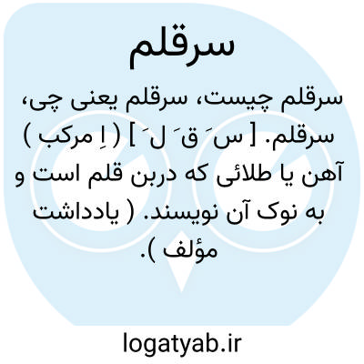 لغت نامه دهخدا سرقلم. [ س َ ق َ ل َ ] ( اِ مرکب ) آهن یا طلائی که دربن قلم است و به نوک آن نویسند. ( یادداشت مؤلف ).