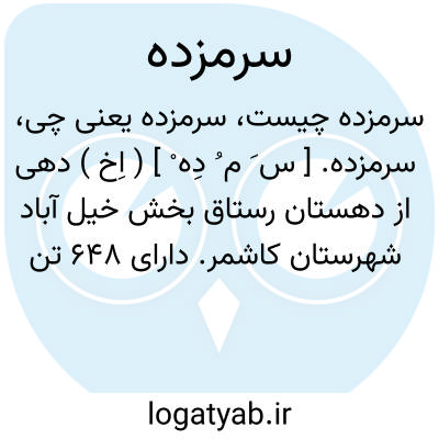 سرمزده. [ س َ م ُ دِه ْ ] ( اِخ ) دهی از دهستان رستاق بخش خیل آباد شهرستان کاشمر. دارای 648 تن سکنه است. آب آن از قنات. محصول آن غلات و انگور است. ( از فرهنگ جغرافیائی ایران ج 9 ).