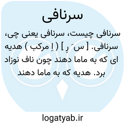 سرنافی. [ س َ رِ ] ( اِ مرکب ) هدیه ای که به ماما دهند چون ناف نوزاد برد. هدیه که به ماما دهند گاه چیدن ناف نوزاد. ( یادداشت مؤلف ).