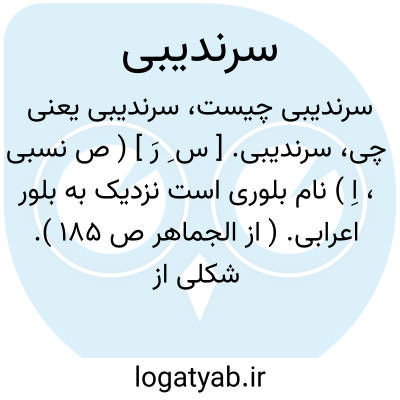 سرندیبی. [ س ِ رَ ] ( ص نسبی، اِ ) نام بلوری است نزدیک به بلور اعرابی. ( از الجماهر ص 185 ). شکلی از مروارید مفرس است و چنان است که گویی چند دانه را بهم پیوسته و یکی کرده اند. ( یادداشت مؤلف ).