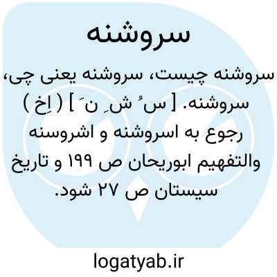 سروشنه. [ س ُ ش ِ ن َ ] ( اِخ ) رجوع به اسروشنه و اشروسنه والتفهیم ابوریحان ص 199 و تاریخ سیستان ص 27 شود.