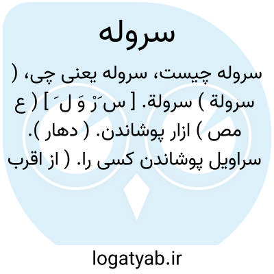( سرولة ) سرولة. [ س َرْ وَ ل َ ] ( ع مص ) ازار پوشاندن. ( دهار ). سراویل پوشاندن کسی را. ( از اقرب الموارد ).