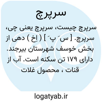 سرپرچ. [ س َ پ َ ] ( اِخ ) دهی از بخش خوسف شهرستان بیرجند. دارای 179 تن سکنه است. آب از قنات، محصول غلات، پنبه، میوه. ( از فرهنگ جغرافیائی ایران ج 9 ).