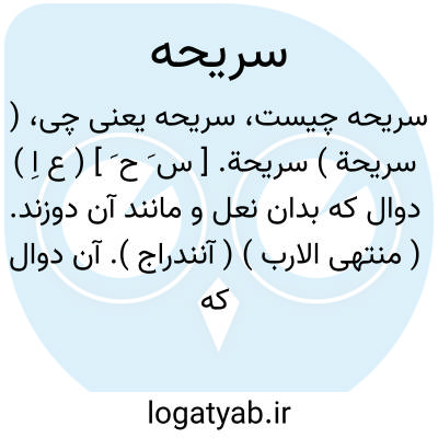( سریحة ) سریحة. [ س َ ح َ ] ( ع اِ ) دوال که بدان نعل و مانند آن دوزند. ( منتهی الارب ) ( آنندراج ). آن دوال که نمدزین با زین بر آن بندند. ( مهذب الاسماء ). || خط دراز از خون. || راه روشن از زمین تنگ بسیاردرخت. || پاره ای از جامه. ( اقرب الموارد ) ( منتهی الارب ) ( آنندراج ).