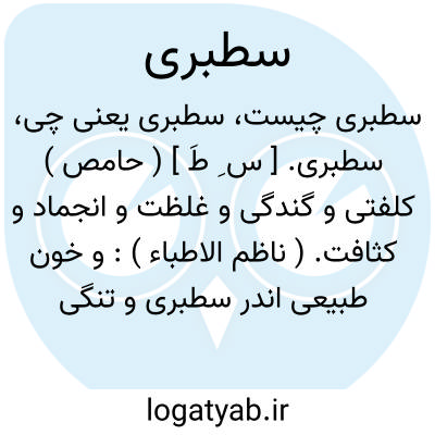 سطبری. [ س ِ طَ ] ( حامص ) کلفتی و گندگی و غلظت و انجماد و کثافت. ( ناظم الاطباء ): و خون طبیعی اندر سطبری و تنگی معتدل باشد. ( ذخیره خوارزمشاهی ).