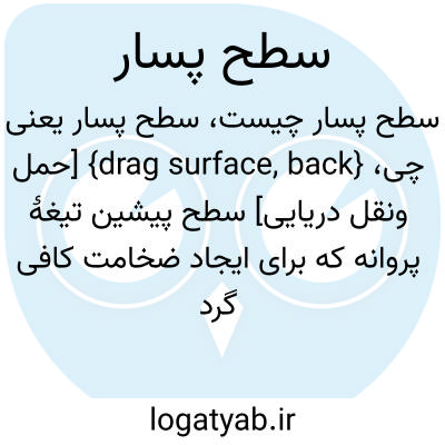 {drag surface, back} [حمل ونقل دریایی] سطح پیشین تیغۀ پروانه که برای ایجاد ضخامت کافی گرد شده است تا به تیغه نیروی کافی بدهد