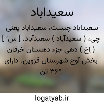 ( سعیدآباد ) سعیدآباد. [ س َ ] ( اِخ ) دهی جزء دهستان خرقان بخش آوج شهرستان قزوین. دارای 369 تن سکنه است. آب آن از رودخانه و محصول آن غلات و باغات زردآلو است. شغل اهالی زراعت است. ( از فرهنگ جغرافیایی ایران ج 1 ).