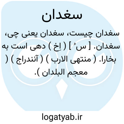 لغت نامه دهخدا سغدان. [ س ُ ] ( اِخ ) دهی است به بخارا. ( منتهی الارب ) ( آنندراج ) ( معجم البلدان ).